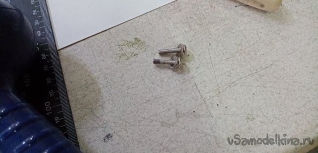 Подбираю нужного размера шайбочки. Парочку не нашел. Отпиливаю нужную от планки детского металлического конструктора.
