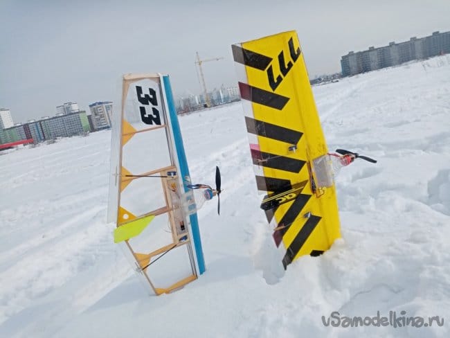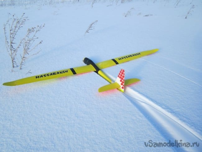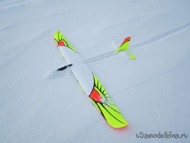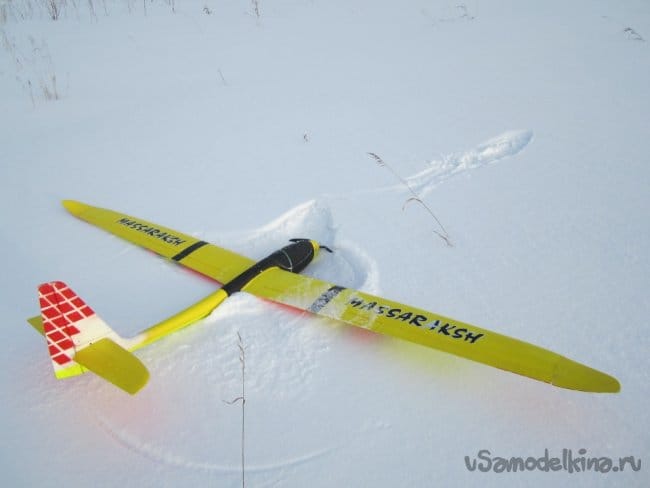 Первый полет 2000го планера, еще не настроен, не раскрашен. Но даже зимой слегка парит. Морозный воздух более плотный и планер четко сидит.