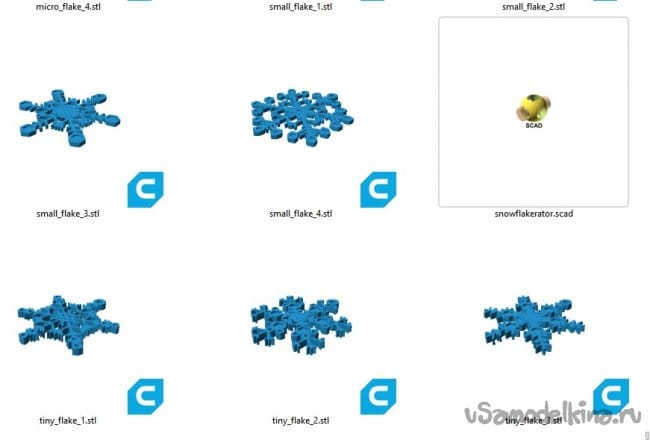 На Thingiverse опубликована подборка моих моделей снежинок, которую Вы можете скачать по следующей ссылке. Возможно, через пару дней будет пополнение модельного ряда, следите за комментариями к статье.