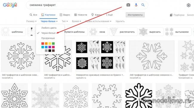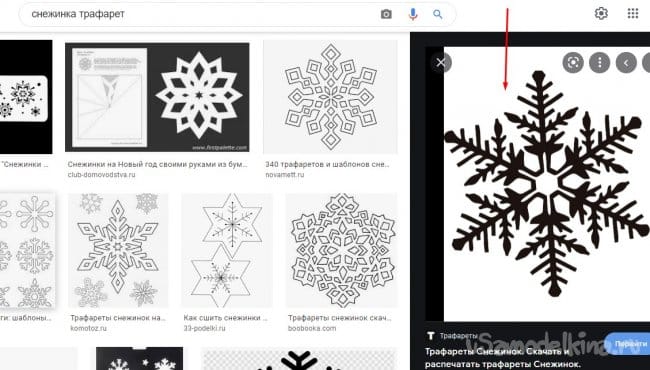 Первый способ — найти интересующую картинку в обычном формате .JPG или аналогичном. Для этого можно воспользоваться поисковой системой google задав запрос «снежинка трафарет», или другой подходящей тематики.
