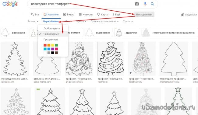 Далее нужно включить режим поиска «картинки», и ограничить поиск по цвету в режим «черно-белые».