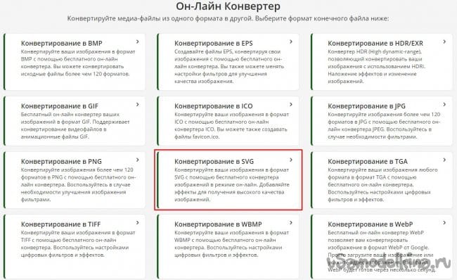Из открывшегося списка выбираем «конвертирование в SVG».