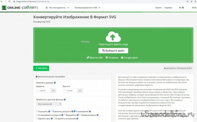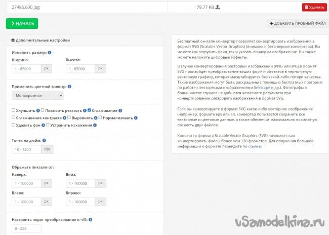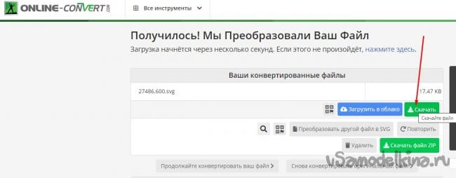 Жмем «начать», и по завершении преобразования скачиваем файл .SVG.