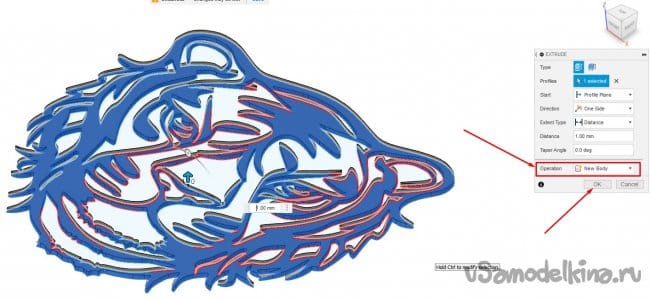 Создание объемной модели из векторного изображения в программе Fusion360.