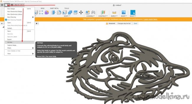 В этом случае придется обратиться к более серьезному программному комплексу — Autodesk Fusion360. Он бесплатен для домашнего использования, а способ который, я покажу далее, довольно прост.