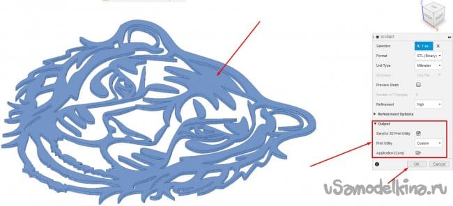 Программный комплекс может преобразовать полученное «твердое тело» в формат STL путем экспорта. Эта операция производится онлайн, и довольно долгая.