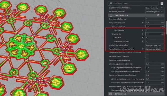 Высоту первого слоя оставил 0,2 мм, а последующих — 0,24 мм. Это ускорит печать, и уменьшит количество дефектов.