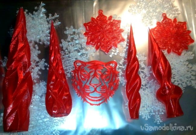 Также очень интересно будут выглядеть снежинки и украшения для новогодней ёлки, если их напечатать из светящегося в темноте филамента.