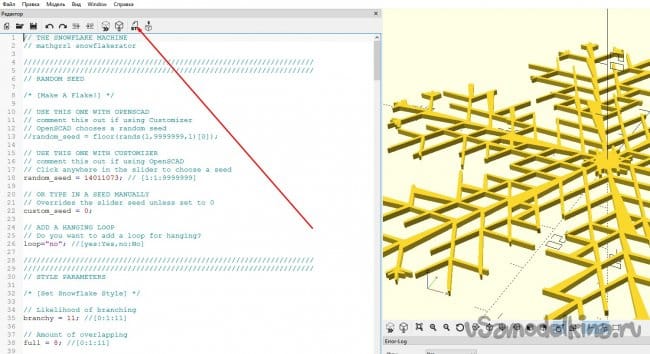 Если снежинка с заданными параметрами вам понравилась, для начала «рендеринга» нужно нажать F6. Это может занять несколько минут. По завершении вычислений программа издаст звуковой сигнал, модель станет желтого цвета и пропадет оранжевый круг под ней.