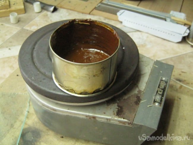 Фото 6. Извлечение залитой канифоли из баночки.