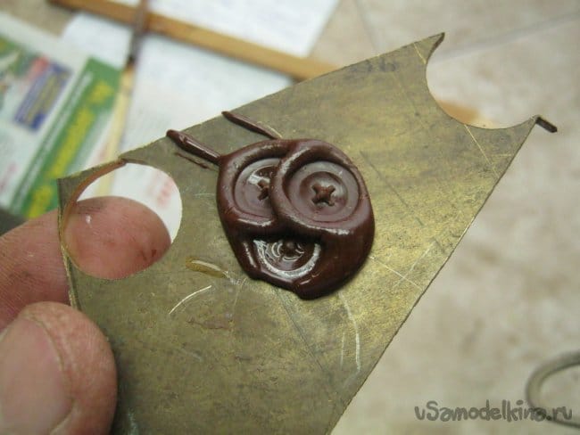 Фото 8. Проба сургуча на латунной пластине.