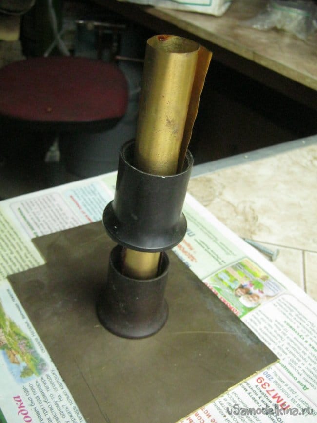 Удобно иметь готовый сургуч в виде нетолстых палочек, нетрудно быстро размягчить ее конец над пламенем и опечатать нужное. Аккуратнее удаются печати при разогревании небольшой порции сургуча в специальном ковшике. Мы отлили палочку своего сургуча в импровизированной форме из тонкого, свернутого трубкой, латунного листа и нашедшегося в хламе (Фото 10).
