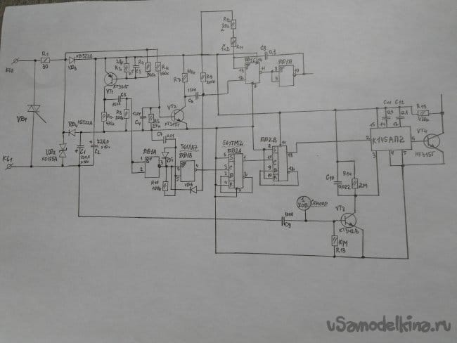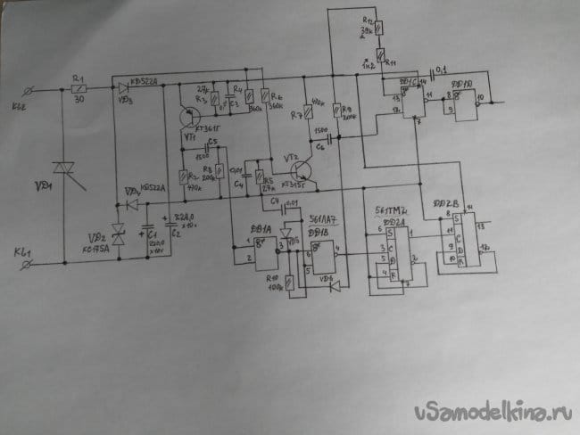 Чтобы объединить эти импульсы в одной полярности, это необходимо для синхронизирующей работы релаксатора, импульс с точки С5,R8, приходит на ножки 1,2, микросхемы DD1А.