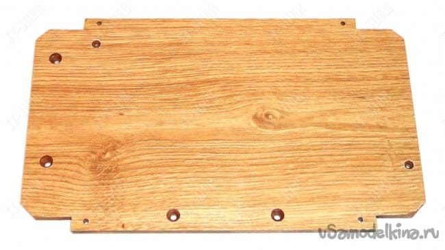 Днище корпуса изготовлено из обрезка ламината толщиной 6,7мм. Срезы и отверстия были обработаны быстросохнущим бесцветным лаком «ХВ-784». Днище крепится к каркасу четырьмя винтами М3.