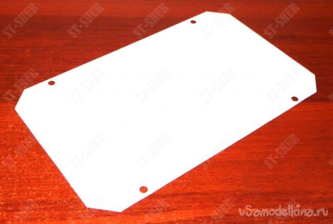 Подкладка под днище была вырезана из очень тонкого белого пластика. Отверстия под винты пробиты обычным канцелярским дыроколом.