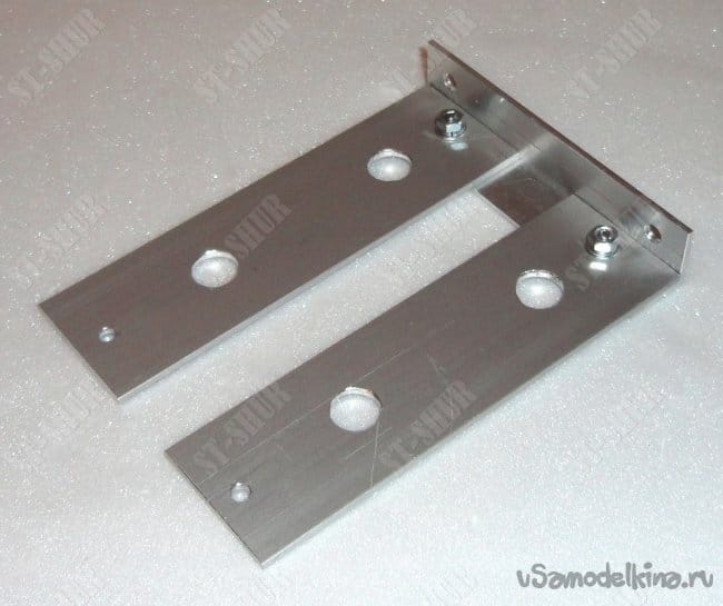 Крепежные планки для потенциометров изготовлены из обрезков алюминиевой полоски размерами 30х2мм и «Г» образного профиля 15х15х1,5мм. Планки предусматривают установку четырех потенциометров (задел на будущие доработки конструкции). Т.к. при их установке прямо на переднюю панель остается большой и не эстетичный зазор между передней панелью и ручками регулировок.