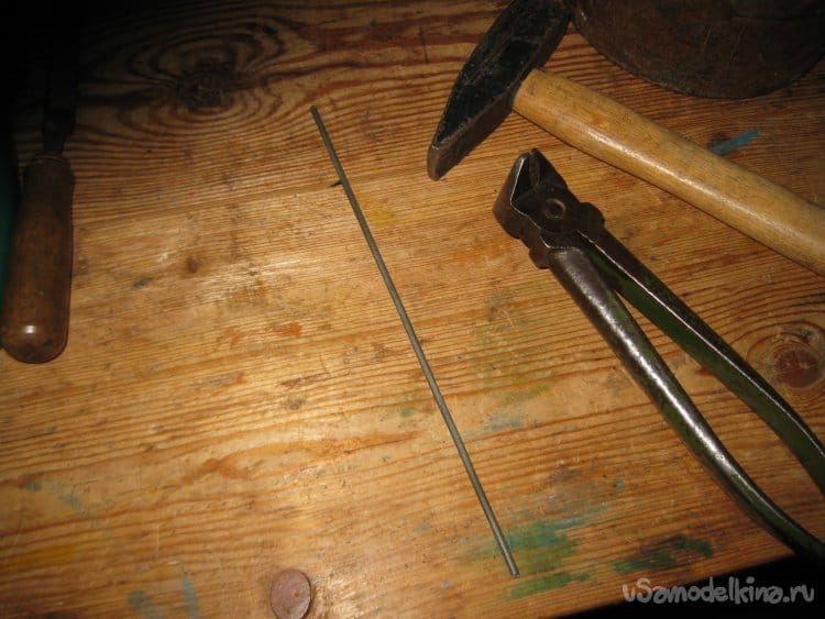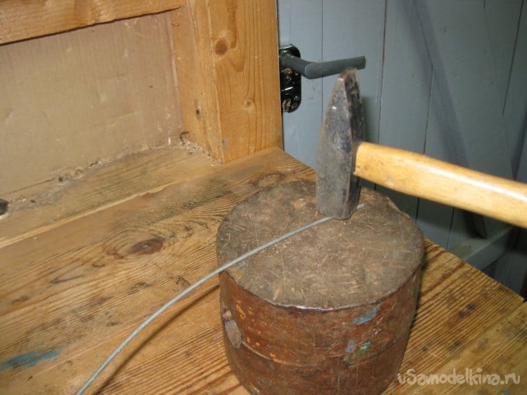 Шаг 1. Сначала выпрямляем проволоку на наковальне при помощи молотка.