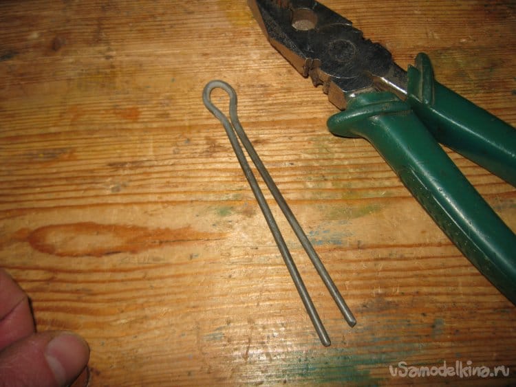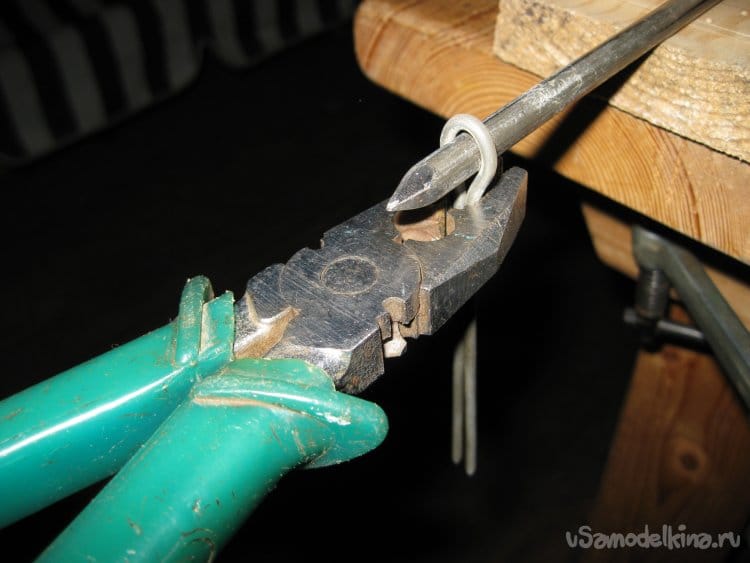 А затем обжимаем оба конца заготовки пассатижами, под самым гвоздем, формируя таким образом на заготовке, небольшую петлю.