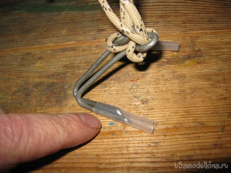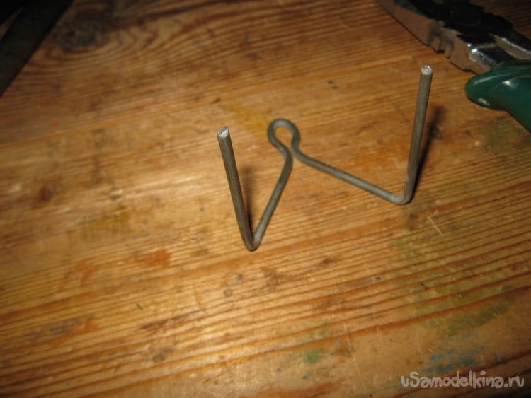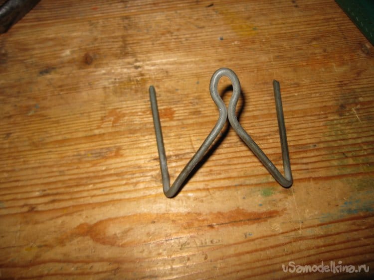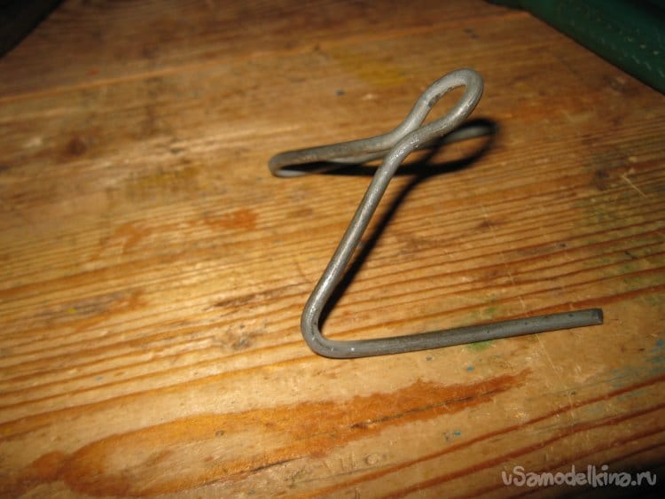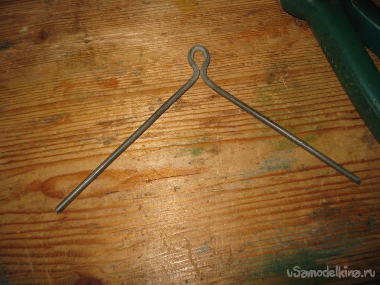 Затем, отступив сантиметра четыре от петли, загибаем концы проволоки под острым углом, относительно плоскости петли.