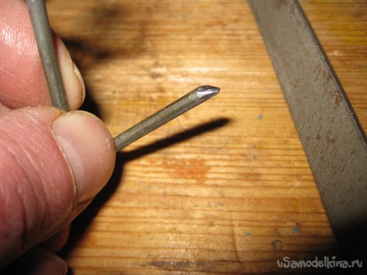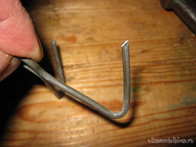Затем дополнительно затачиваем концы крючка напильником, но не слишком остро, иначе можно будет легко пораниться.