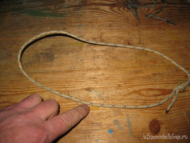 Шаг 1. Отрезаем прочный шнур длиной 70-75 см, и связываем его концы между собой каким-либо надежным узлом.