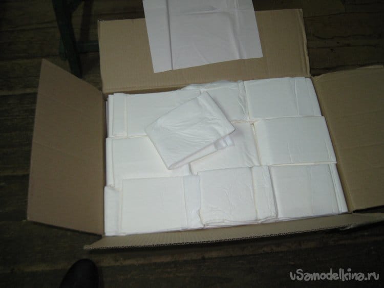В этой коробке находятся одноразовые пеленки, которые мы покупали для старой, больной собаки.