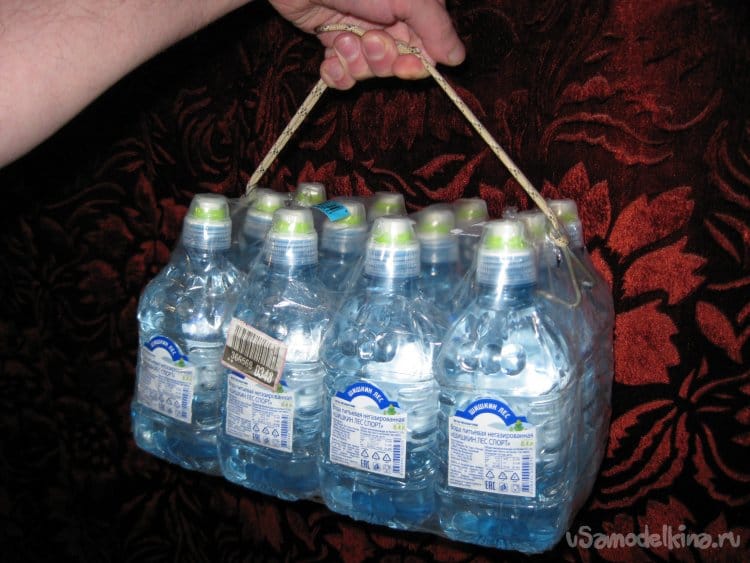 А вот пример, когда данная ручка очень пригодилась для переноски предметов в упаковке другого рода. Как видно, это упаковка пластиковых бутылок с питьевой водой.