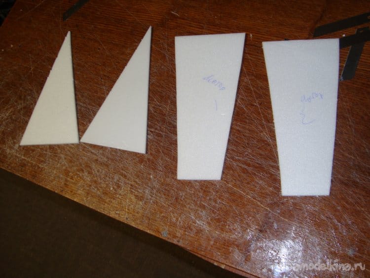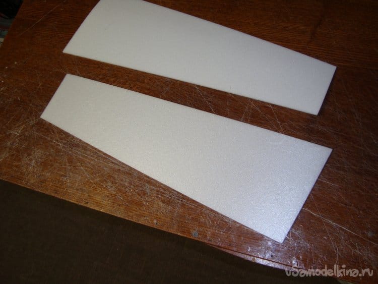 Киль делаю из двух слоёв потолочки, вырезал заготовки. Руль направления решил не делать.