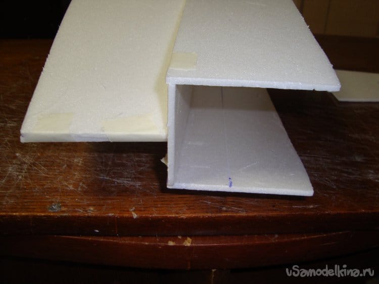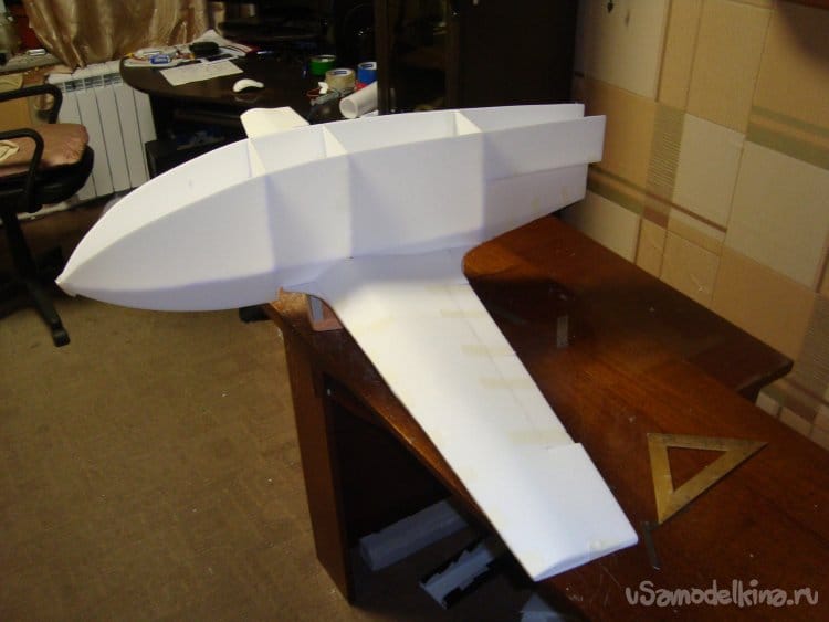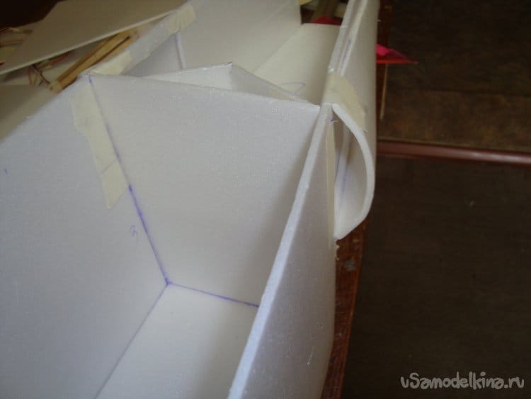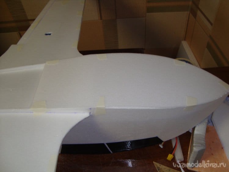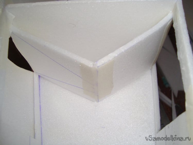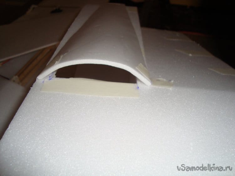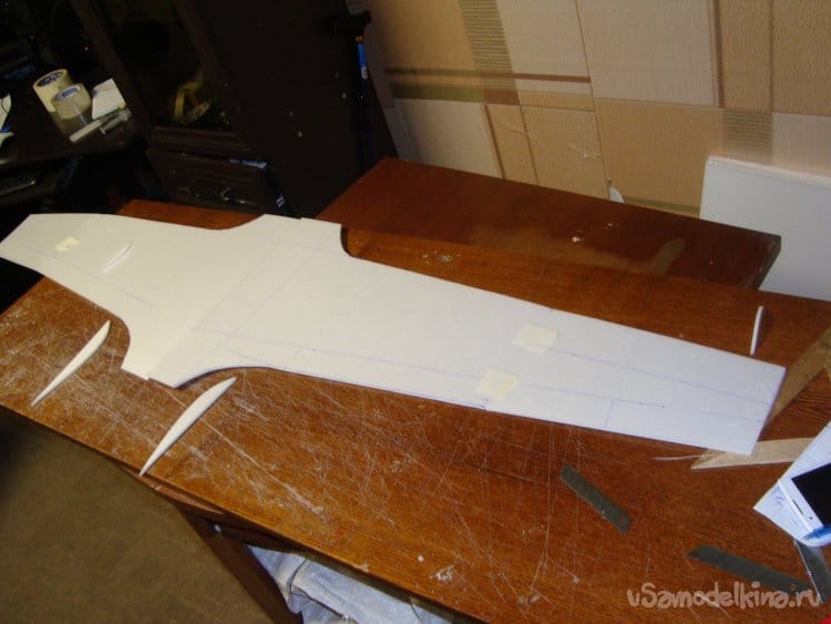 Вырезаю боковые стенки фюзеляжа и примеряю их на крылья.