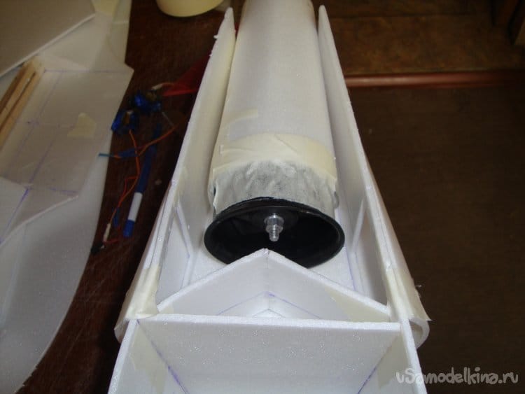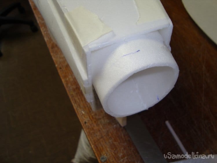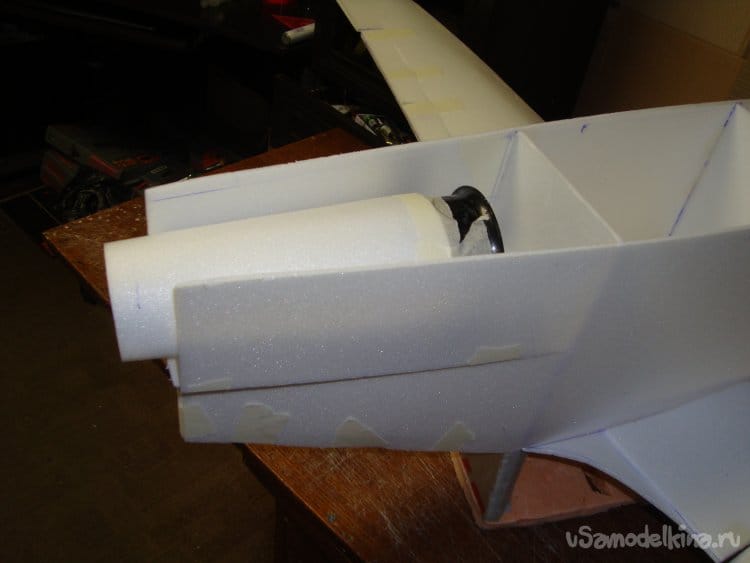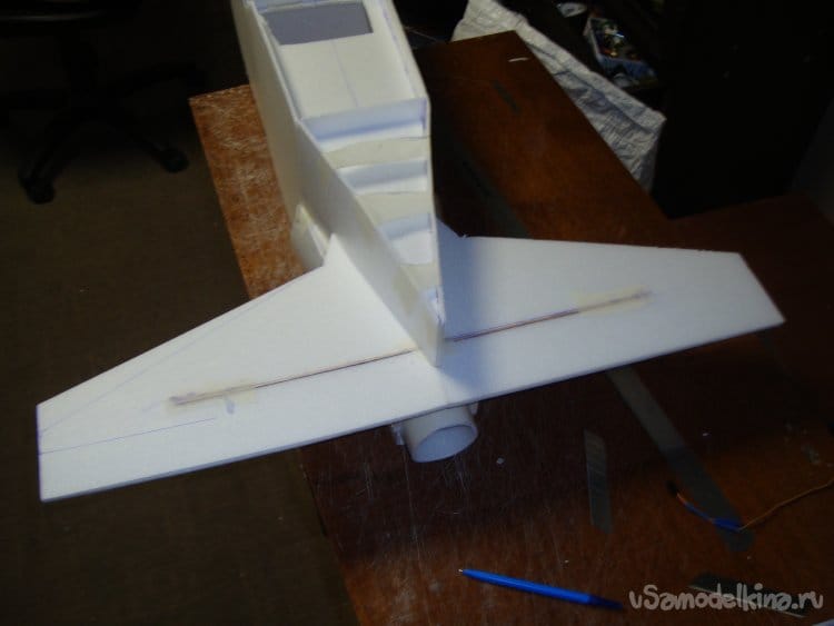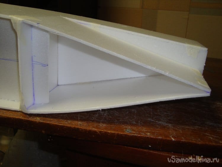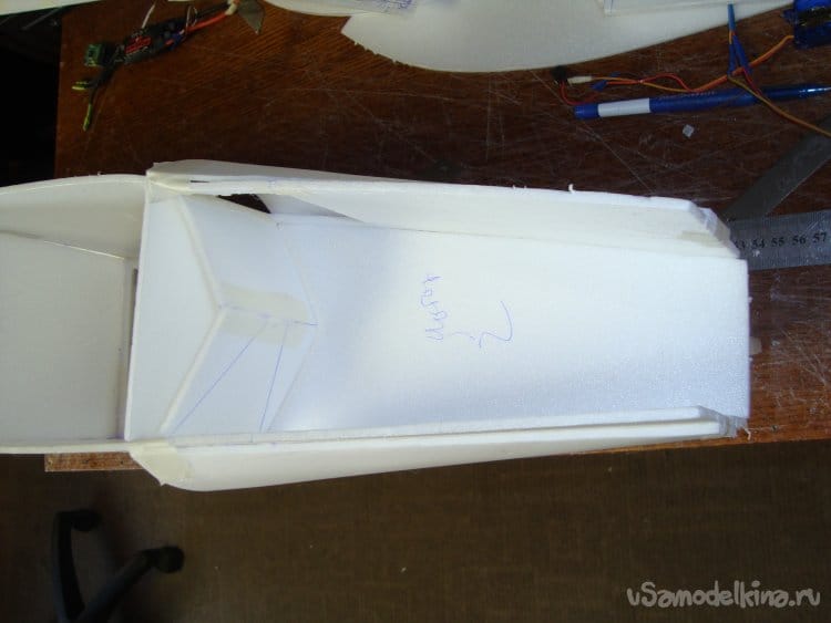 Сделал прорези в хвостовой части фюзеляжа для стабилизатора.