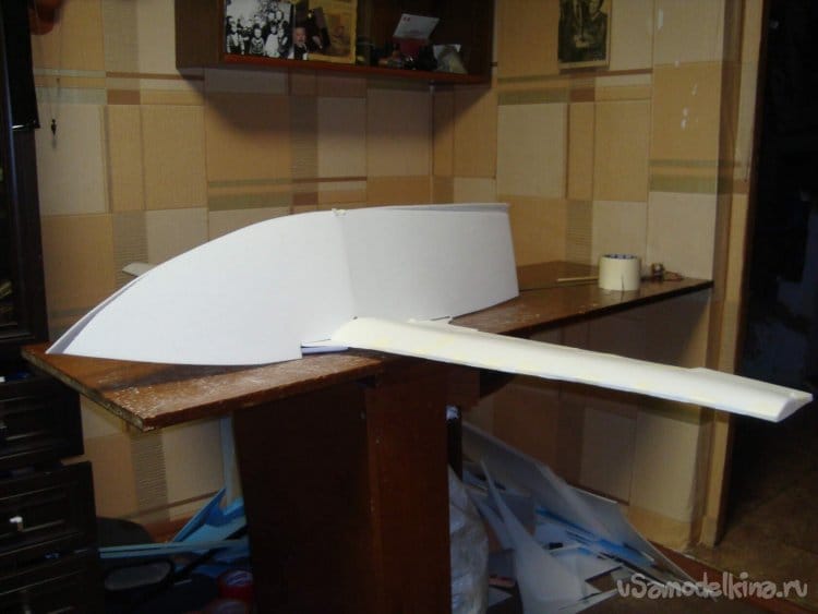 Примерил крылья на фюзеляж. Подогнал точно на посадочное место.