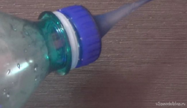 Насадка готова! Одеваем ее на бутылку. Бутылку можно заполнить кремом и украшать кулинарные блюда: