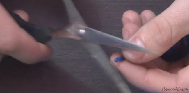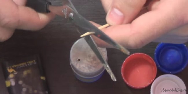 Берем зубочистку и отрезаем один из острых краев ножницами:
