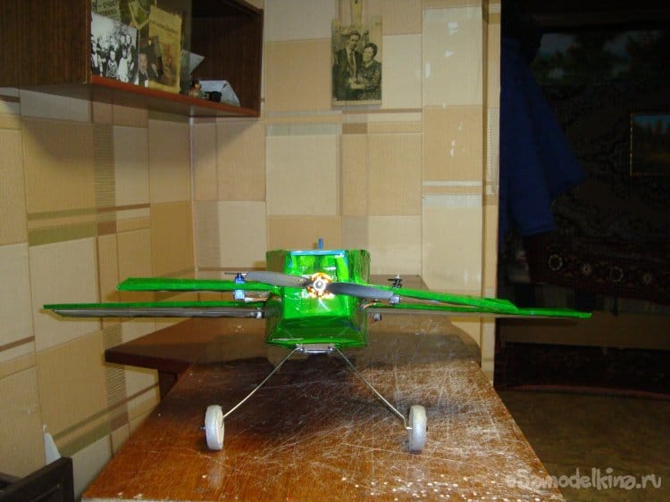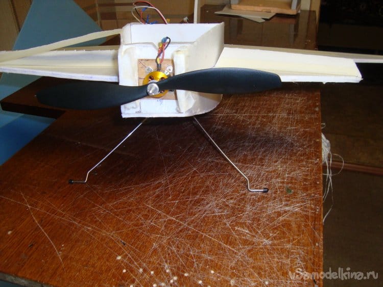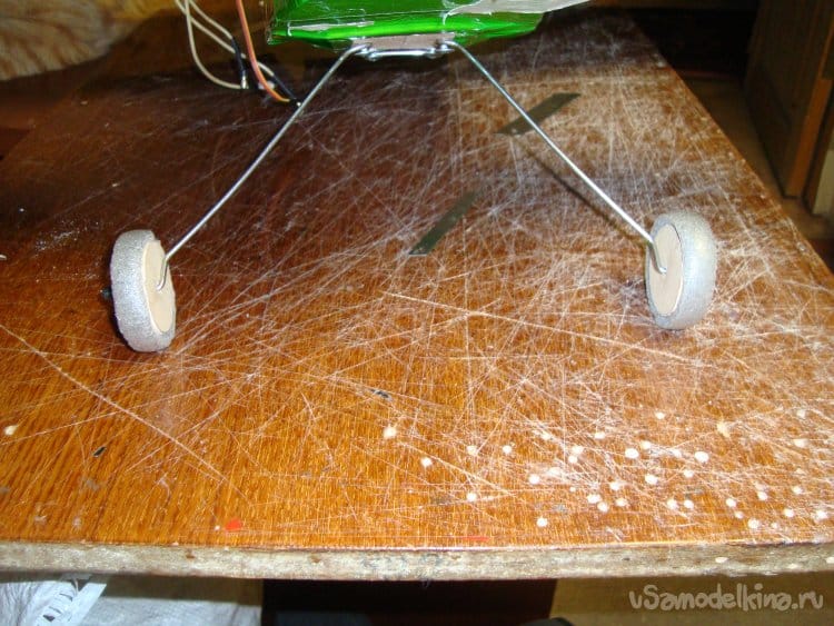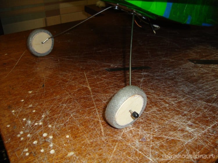 Стойки шасси я взял готовые, от старой авиамодели, но их можно изготовить из проволоки толщиной 3 мм и форму придать по вашему вкусу и фантазии.