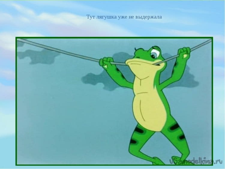 Своё название, модель получила совершенно случайно, в связи с тем, что у меня не было скотча другого цвета, кроме зелёного. Вспомнилась книжка «Лягушка путешественница», которую написал Всеволод Михайлович Гаршин.
