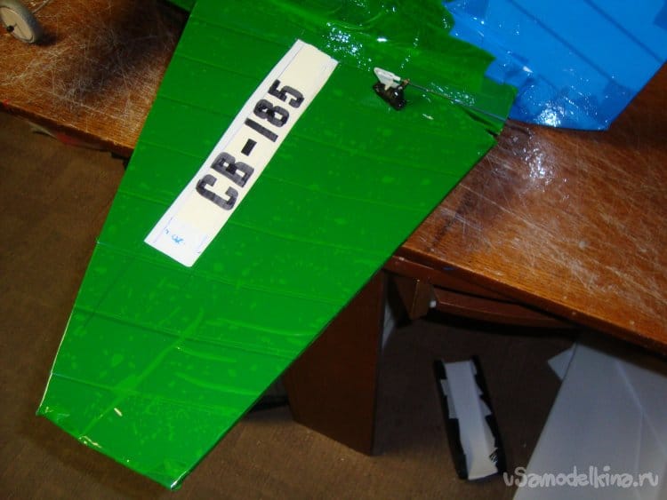 В крыле вырезал элероны и навесил их на бумажный, малярный скотч.