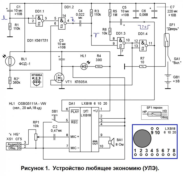 1). Активный тональный зуммер заменён цифровым магнитофоном (модулем производства КНР LXB18 6 10 20). Другими словами, УЛЭ стало «говорящим» устройством.