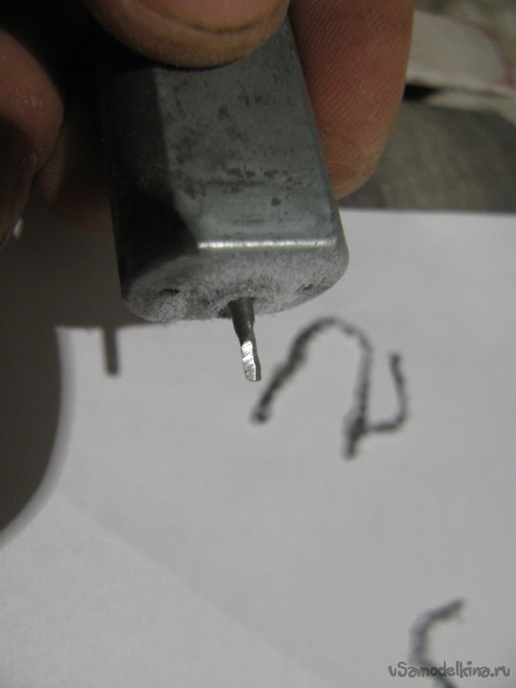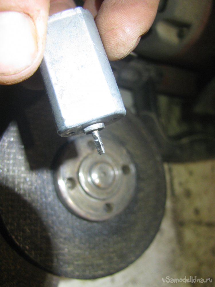 Первым делом я начал с ножа станка, чтобы понять, все ли получится и будет ли станок резать бумагу. Первым делом при помощи болгарки аккуратно подточил вал моторчика, чтобы получилось что-то типа плоской отвертки. Ну а далее интуитивно завалил плоскости и сформировал своего рода ножи.