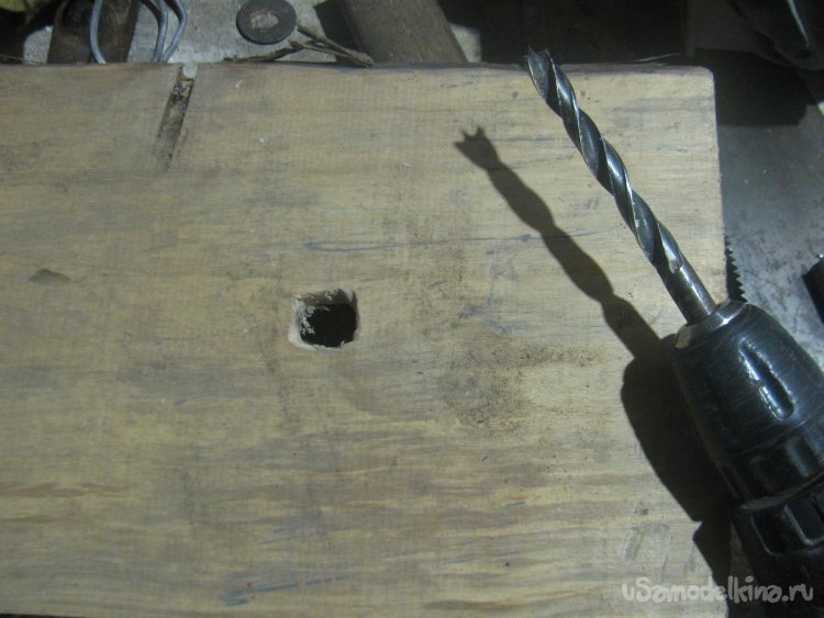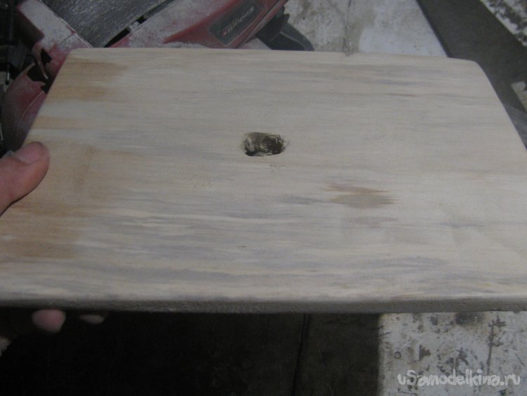 В качестве столешницы выбрал кусок доски нужной мне ширины, толщину выбрал небольшую, чтобы было проще проковырять отверстие, древесина тоже довольно мягкая.