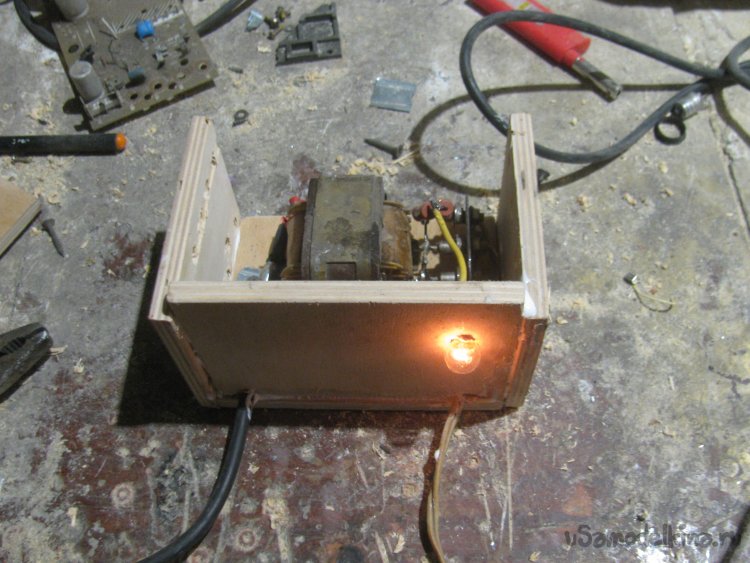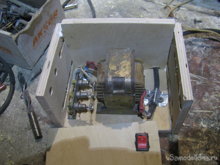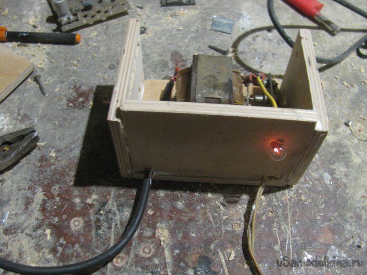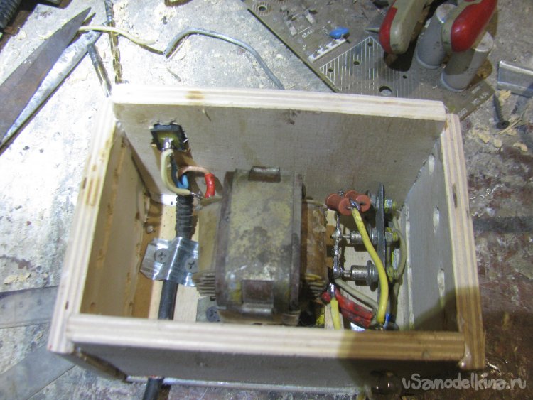 Установил стенку с включателем, он управляет включением непосредственно трансформатора. Вырезал крышку, она прикручивается двумя саморезами.