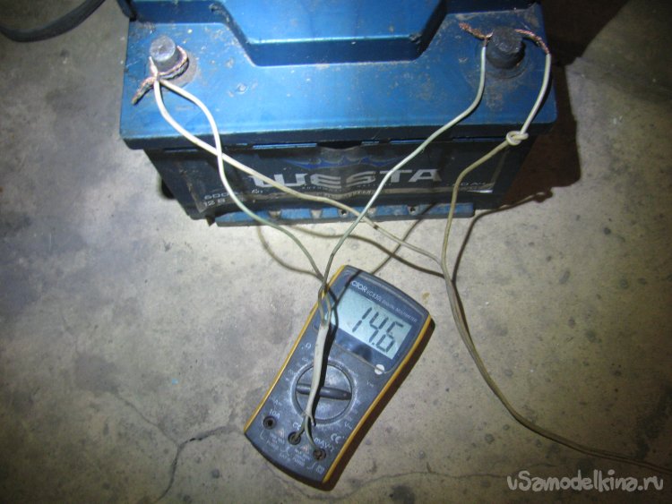 Ну что, все готово. В режиме КЗ ток составляет более 7А, трансформатор при этом ощутимо гудит, лучше не держать его в таком состоянии долго, это чревато перегревом. Напряжение при подключении АКБ составляет 14,6В. На холостых выходит 7.1В в режиме постоянного тока, а в переменке показывало 15.5В. Моторчик дворников работает, хоть и гудит немного больше обычного.