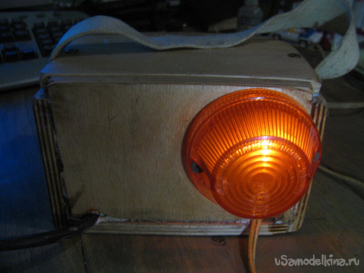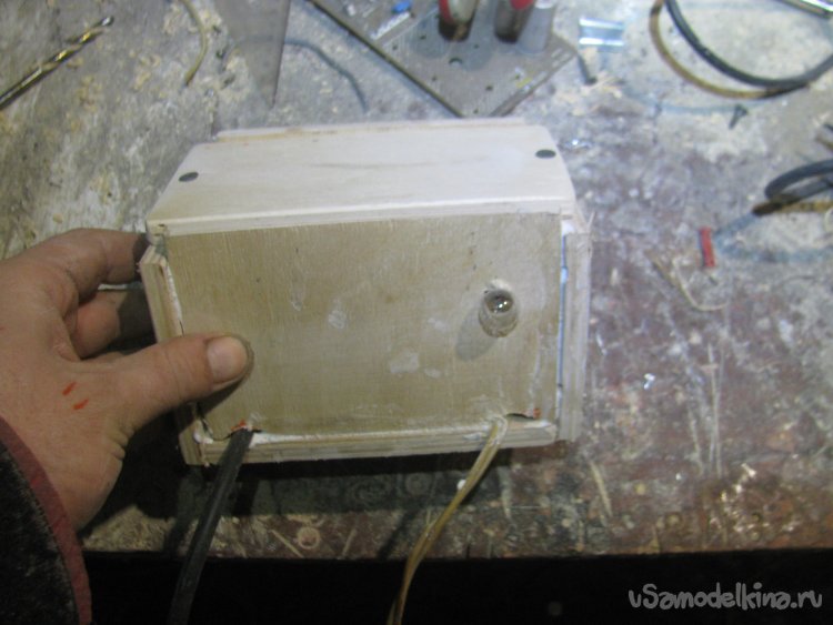 Под лампочку в фанере высверлено отверстие.
