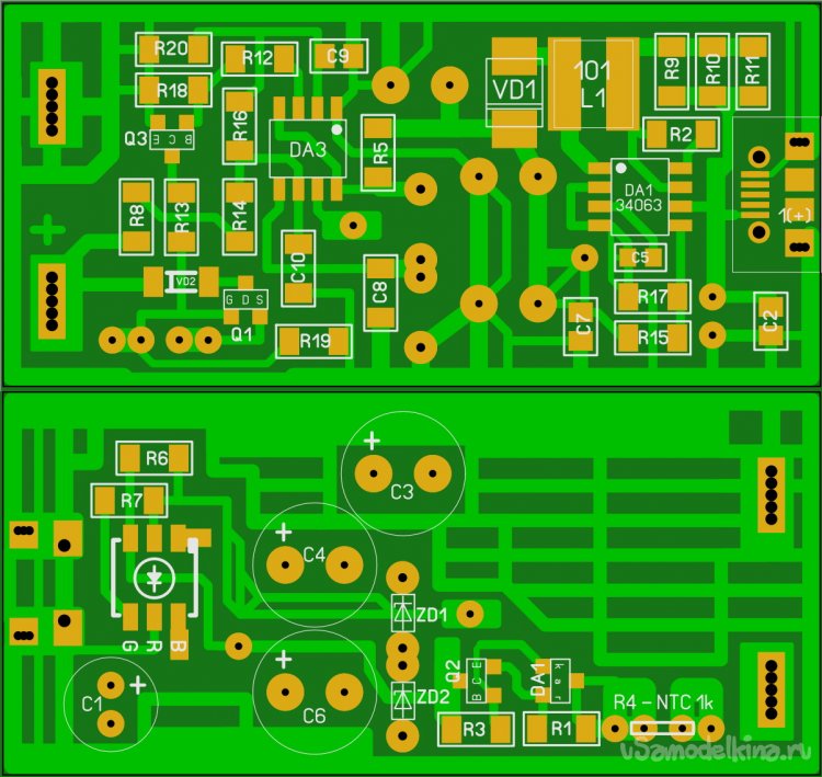 Обе стороны на изображении - НЕ зеркальные, а изображены так, как они будут выглядеть сверху на готовой печатке. Печатная плата в формате *.lay6 доступна для загрузки -
