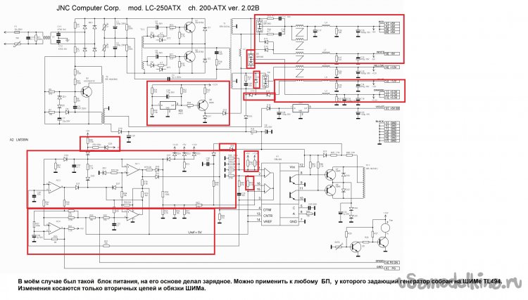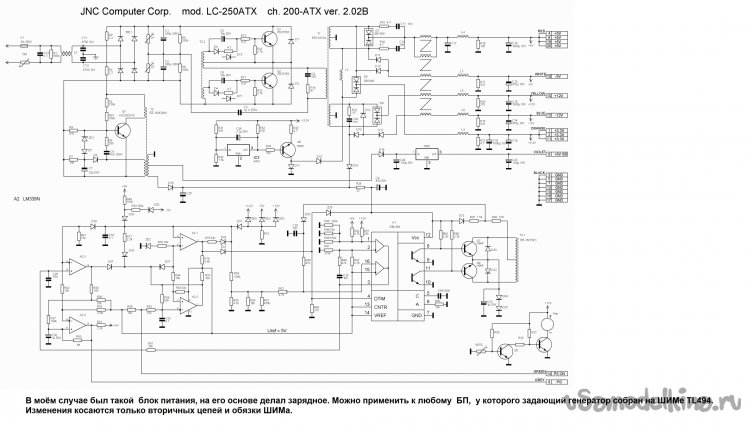 У меня был БП JNC LC250ATX по классической схеме на доступном и изъезжанном вдоль и поперёк ШИМе TL494 (аналог КА7500)