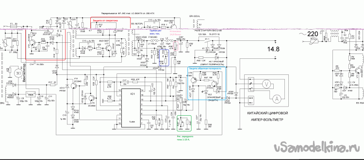 Я ни в коем случае не утверждаю, что это единственно правильная схема! Просто делюсь своим вариантом переделки БП в ЗУ.