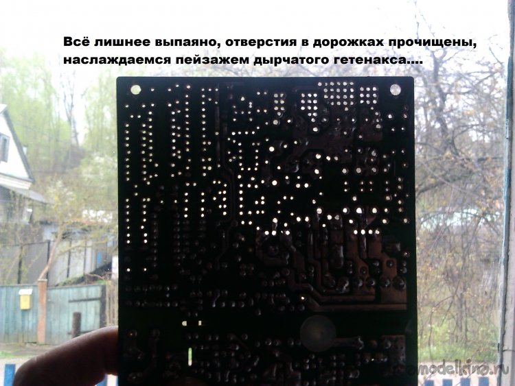 Внимательно сверяетесь со схемой зарядного что бы не выпаять лишнего! И если вы всё выпаяли правильно, то можно наслаждаться пейзажом дырчатого гетенакса!