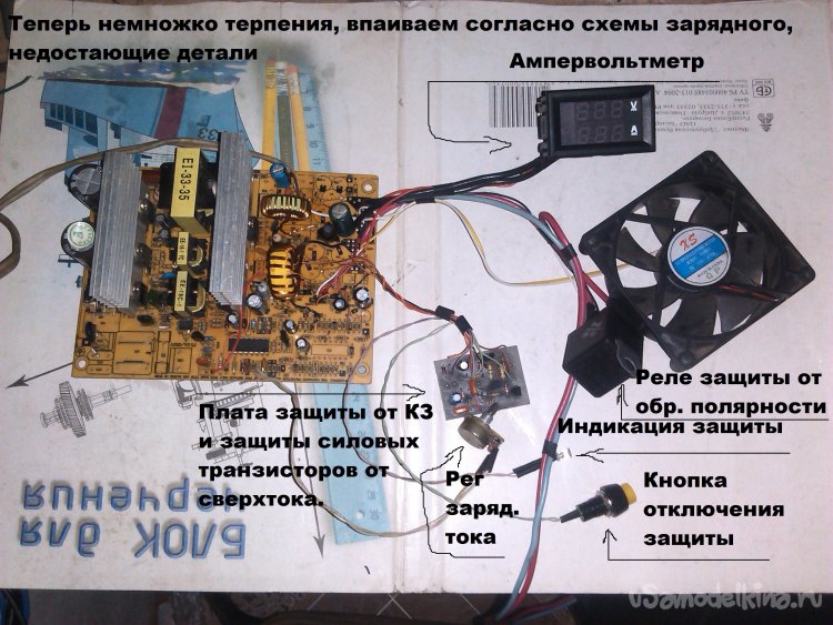 Сначала собираете схему без защит, без реле... Просто Голый блок питания на 15 Вольт. На выход ЗУ подключаете лампочку накаливания 24 Вт 1-5 Вт.