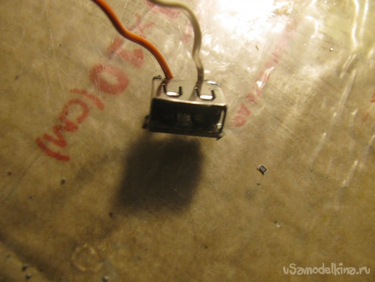 Припаиваем да провода к гнезду USB, тут важно знать распиновку, где плюс, а где минус. Если есть лишний microUSB, можно оторвать от него один конец с USB и просто припаять к делителю.