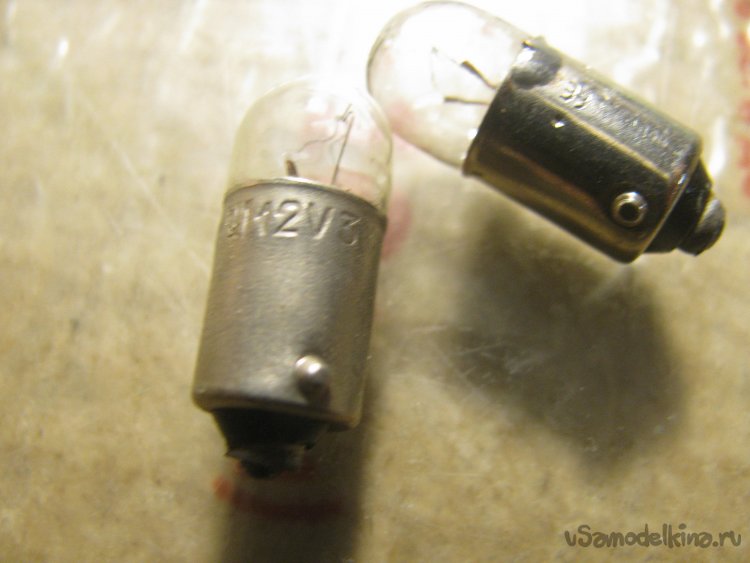 - две лампочки на 12В/3Вт от приборной панели Жигулей;