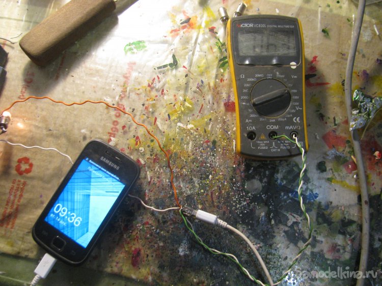 Далее подключил старый телефон, к сожалению он зарядку не увидел, а напряжение не упало, возможно это из за того, что у меня информационные провода никуда не подключены.